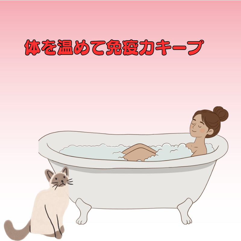 医師はぬるめのお風呂でゆっくり温まる「温活」を推奨しています。冷えは免疫力低下につながるため、入浴後に体を温めるハーブやアロマを活用するのも効果的です。