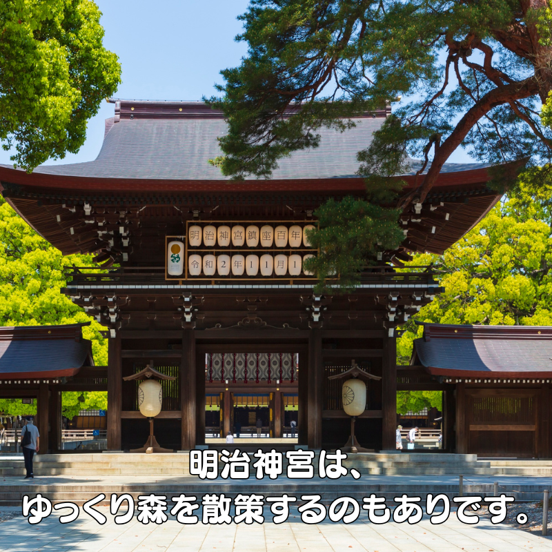 アクセス:JR「原宿駅」・東京メトロ「明治神宮前駅」から徒歩圏(参道を含めると本殿まで少し歩きます)