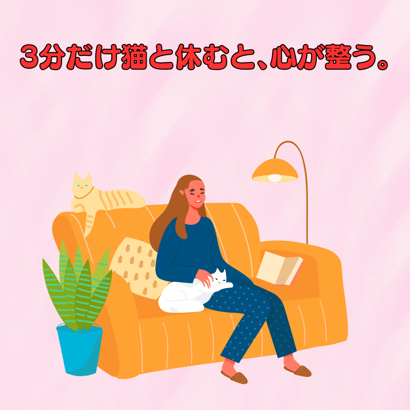 忙しい日ほど、数分の休憩が心を整えてくれます。猫の隣に座って、深呼吸をひとつ。それだけで気持ちがふっと軽くなります。