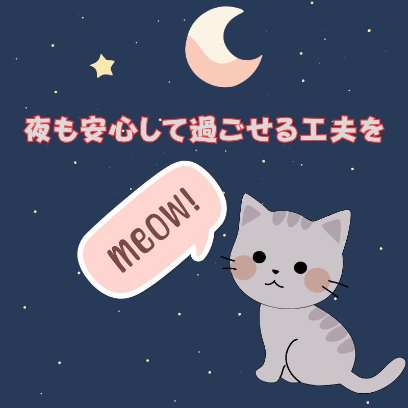 対策としては、日中にしっかり遊ばせる、寝る前にご飯を与える、安心できる寝床を用意するなどがあります。