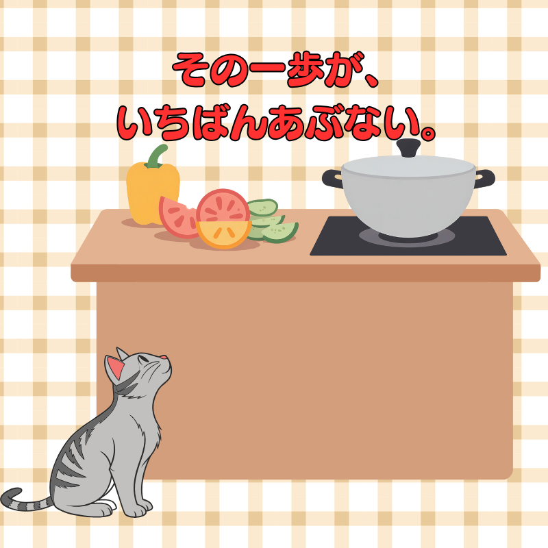 揚げ物や炒め物は特に危険。油は飛ぶし、熱気も強い。猫が足元に来ると、飼い主が驚いて手元が狂う…という“二次事故”も起きます。