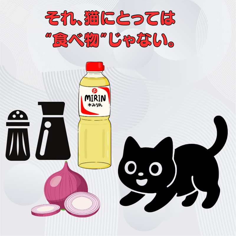 みりんは甘い香りで猫が寄ってきやすいのに、成分的に負担になりやすいタイプです。 煮物や照り焼きの“甘じょっぱい匂い”って、猫的には魅力が強いんですよね。キッチンに近づかせない工夫が大事になります。