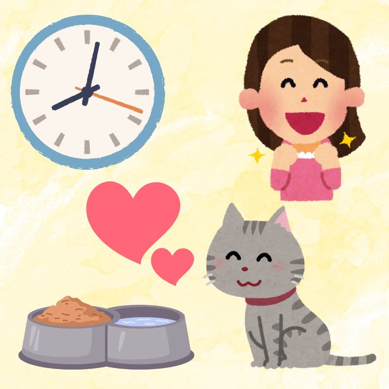 猫の健康管理や日々の変化を把握するためにも、ルーティンは非常に大切です。でも、もし、夕食の時間を変えたい場合などは、ちゃんと猫に説明して、変えた時間でずっとご飯をあげていると、猫達も「あ、ご飯はこの時間なんだ」って理解してくれますから、ご安心を。