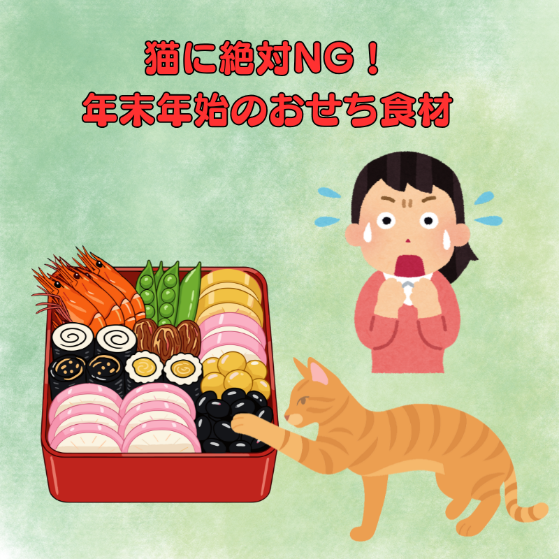 この記事では、ねこ達が安心して猫とお正月を迎えるために、「絶対に食べてはいけないおせち食材」「少量ならOKなもの」「代わりに安全な“猫用お正月ごはん”」を徹底的にわかりやすくまとめました。