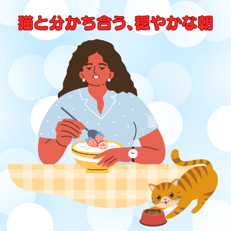 朝のひとときに猫と過ごす時間は、50代女子にとっての小さな幸せです。