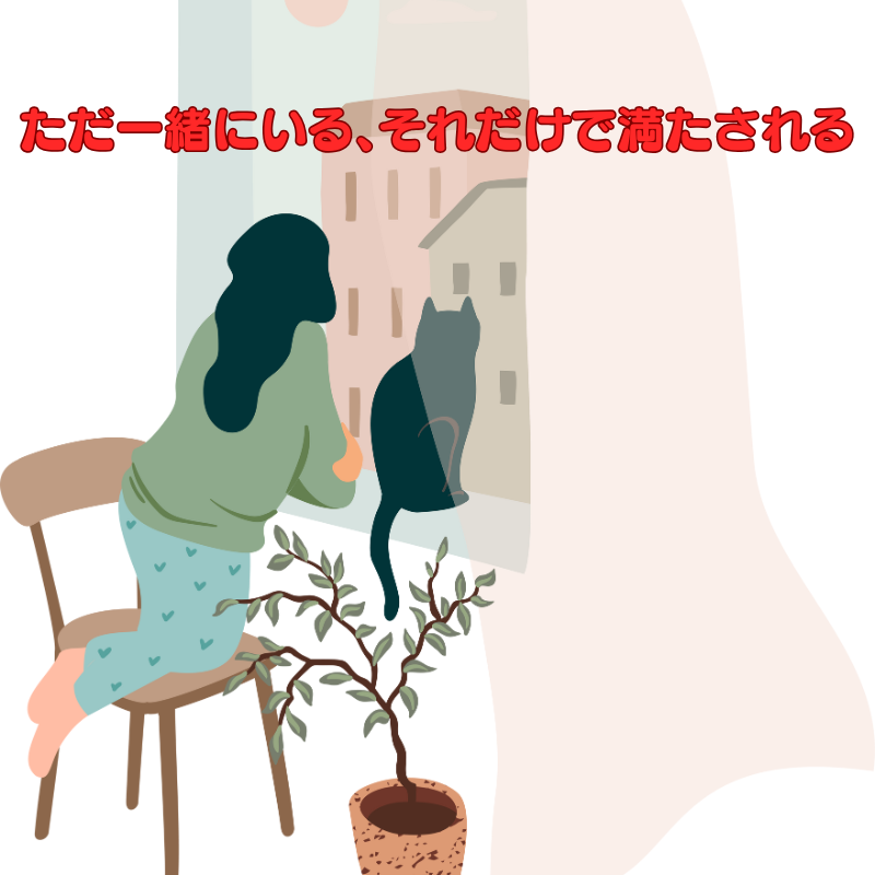 - 窓際で一緒に日光浴しながらお茶を楽しむ