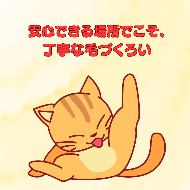 - リラックスしているとき:安心できる環境で穏やかな気持ちのとき、ゆっくりと全身をなめる。