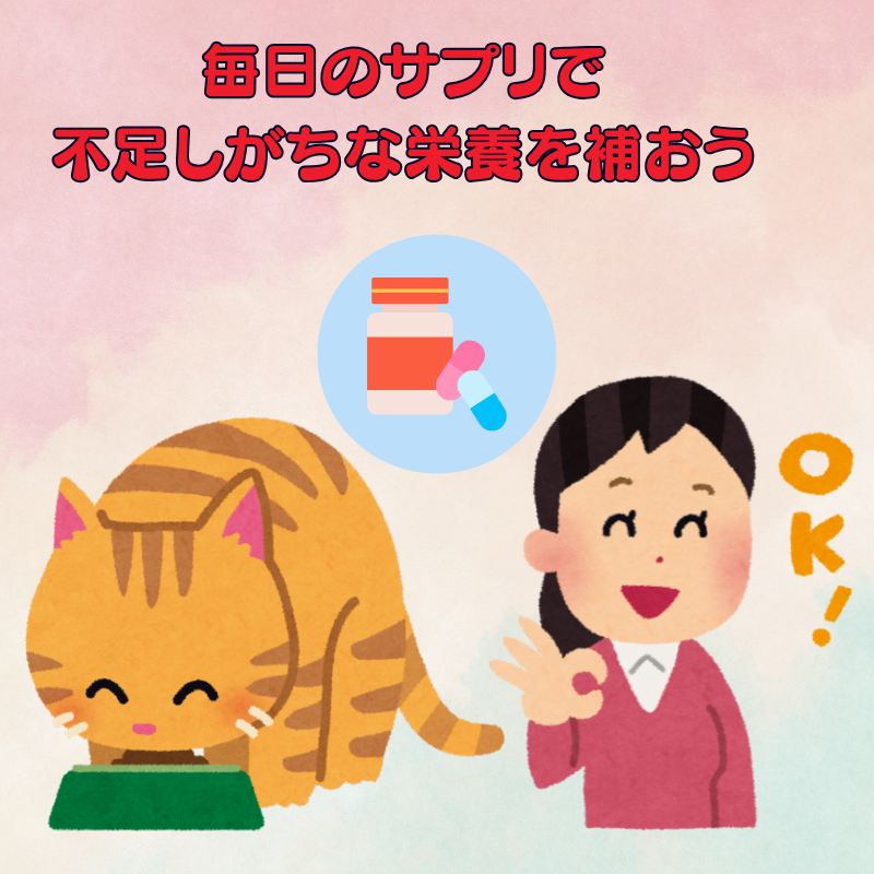 最近は、獣医師も推奨する安全性の高い猫用サプリメントが増えています。