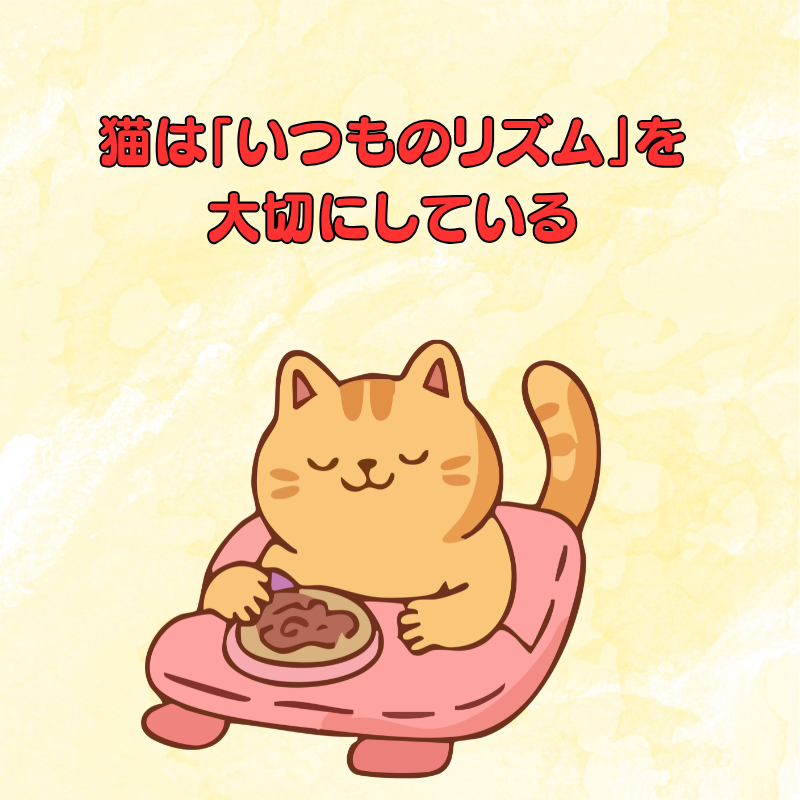 まずはここ。時間がバラバラだと、猫の体内時計もブレやすくなります。猫達は「予測できる暮らし」で安心して、消化も安定しやすいんです。