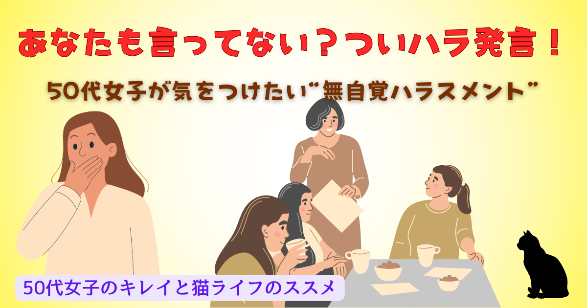 そこで、今回は、50代女子がやりがちな「ついハラ発言」をチェックリスト形式でまとめました。さらに、なぜNGになるのか、そして好印象につながる言い換え術までご紹介します。あなたはいくつ当てはまるでしょうか?