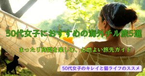 忙しい毎日を過ごす50代女子にぴったりな「チル旅」。何しろ、「チル」って言葉を知ったものだから、使って見たくて仕方がないねこです。