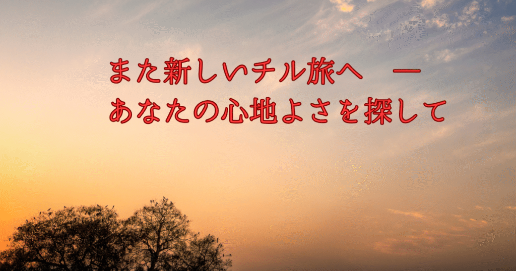 チル旅は、心と体をゆったりほぐし、自分だけの時間を楽しむことができるステキな旅。