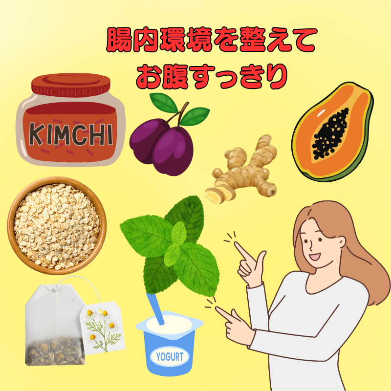 さらに、腸をサポートする食材を取り入れると、膨満感の軽減や便通改善に役立ちます。