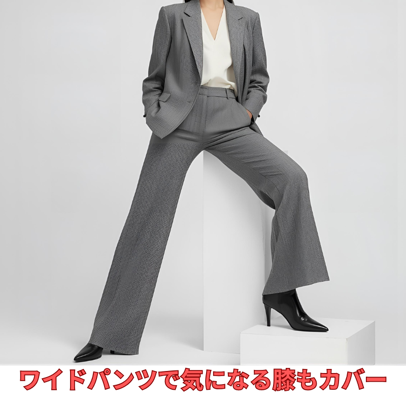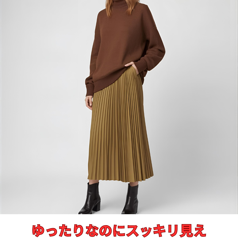 体型が気になる50代女子には、縦のラインを意識した「Iラインシルエット」がおすすめ。ロングカーディガンやストレートパンツで上下の流れを作り、ウエスト位置を少し高めに見せましょう。インナーはやや薄手のリブニットなどを選ぶと、重ねてももたつかずスマートに。