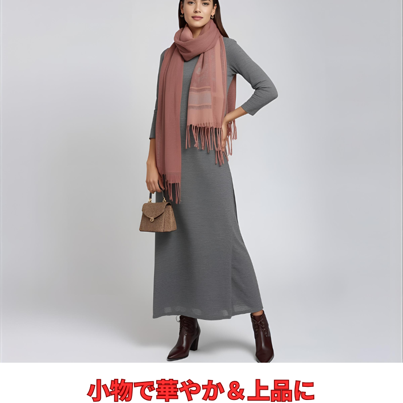 全身をトレンドでまとめすぎると「頑張りすぎ」に見えることも。そこで活躍するのが、小物の力。スカーフやバッグ、アクセサリーで“上品な抜け感”をプラスするだけで、一気にこなれ感が出ます。