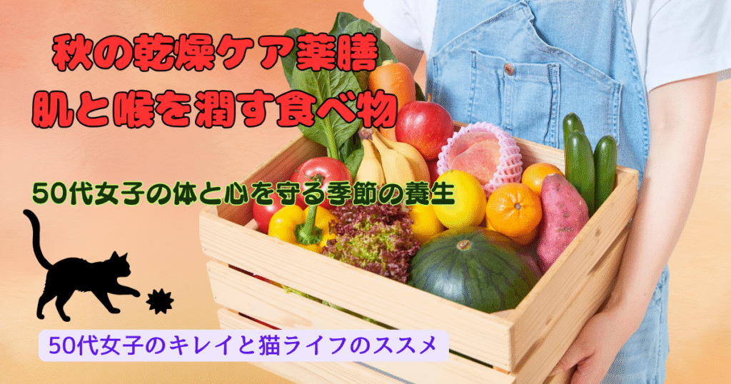 秋の乾燥ケア薬膳|50代女子の肌と喉を潤す食べ物 こんにちは、ねこです。10月に入ると朝晩の空気がぐっと冷たくなり、温暖差が激しくなり湿度も低いので、気づけばお肌や喉がカサカサ…。50代女子にとって秋の乾燥は「美容」と「健康」の両方に大きく影響... -