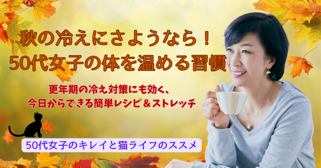 50代女子の秋の冷え対策|体を温める食べ物と習慣 こんにちは!ねこです。 50代になると、冷えが体に与える影響は無視できません。特に更年期に入ると、ホルモンバランスの変化で血流が滞りやすくなり、手足や腰の冷えを感じる方も多いです。 と言うか、年... -