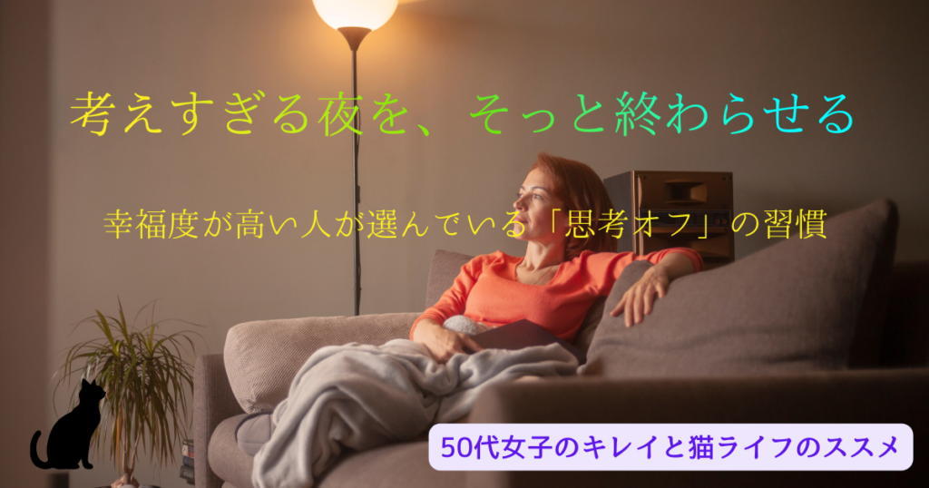 冬に考えすぎてしまう50代女性へ|幸福度が高い人の「思考をオフ」にする5つの習慣 「前向きにならなきゃ」をやめるだけで、心が軽くなる夜があります。 こんにちは!ねこです。冬になると、なぜか気持ちが重くなったり、考えごとが増えたりしませんか?寒... -