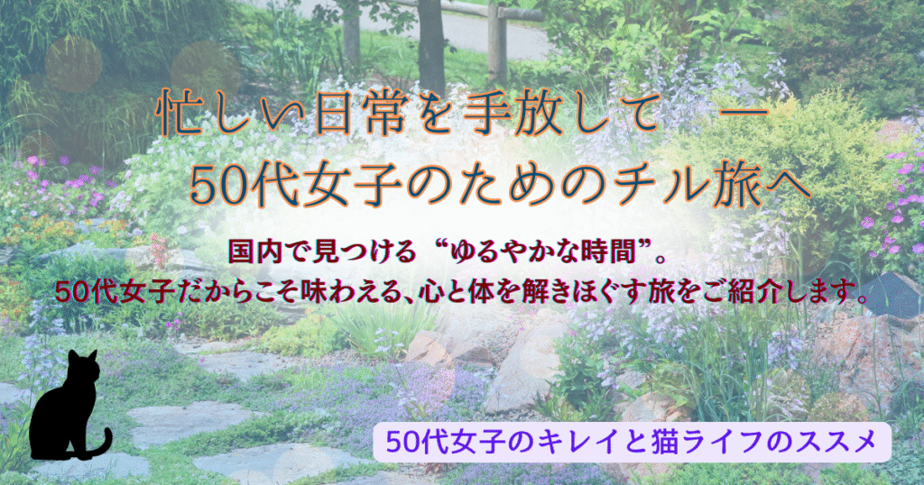 こんにちは!ねこです。 忙しい毎日を過ごす50代女子にぴったりな「チル旅」。何しろ、「チル」って言葉を知ったものだから、使って見たくて仕方がないねこです。 チル旅は、心と体をゆったりほぐし、自分だけの時間を楽しむことができるステキな旅。 今回...