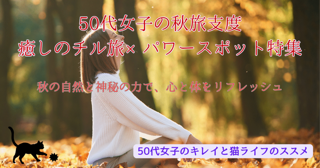 50代女子の秋旅支度|癒しのチル旅×パワースポット特集 こんにちは!ねこです。 秋の風が心地よくなってくるこの季節。ねこ達50代女子にとって、旅は「癒し」と「リセット」の時間。 夏が終わって、少し疲れた心を整える“チル旅”と、エネルギーをもらえる“...